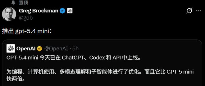 今天,GPT-5.4 mini已经全线上线,API、Codex、ChatGPT三端同步开放。