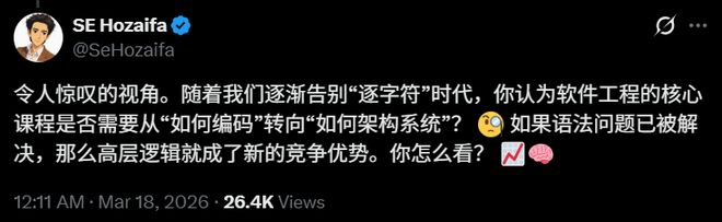 当语法层面被AI解决,软件工程的核心竞争力是不是该从「怎么写代码」转向「怎么设计系统」?