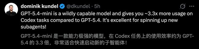 而且mini在Codex中只消耗GPT-5.4配额的30%。