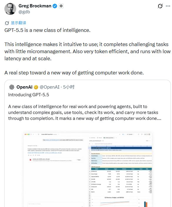 GPT-5.5与此前模型最核心的区别,在于它不再只是等着你一步步告诉它怎么做。用OpenAI总裁格雷格·布罗克曼(Greg Brockman)的话说,这个模型真正特别的地方,在于它能在更少的指导下做更多的事,可以审视一个不明确的问题,并自己弄清楚下一步该做什么。