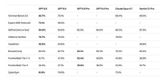 VentureBeat的报道指出,在人类最后的考试这类无工具纯推理基准上,GPT-5.5 Pro的43.1%仍落后于Anthropic未公开的Claude Mythos Preview的56.8%。这说明在不同的能力维度上,各家模型的优势仍在分化。