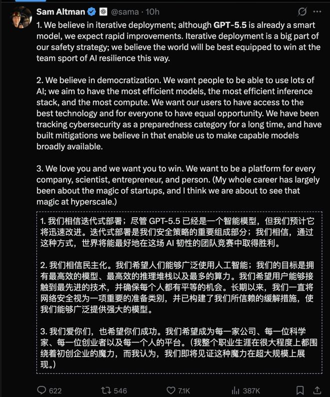 奥特曼直接摊牌了:GPT-5.5还会快速迭代。