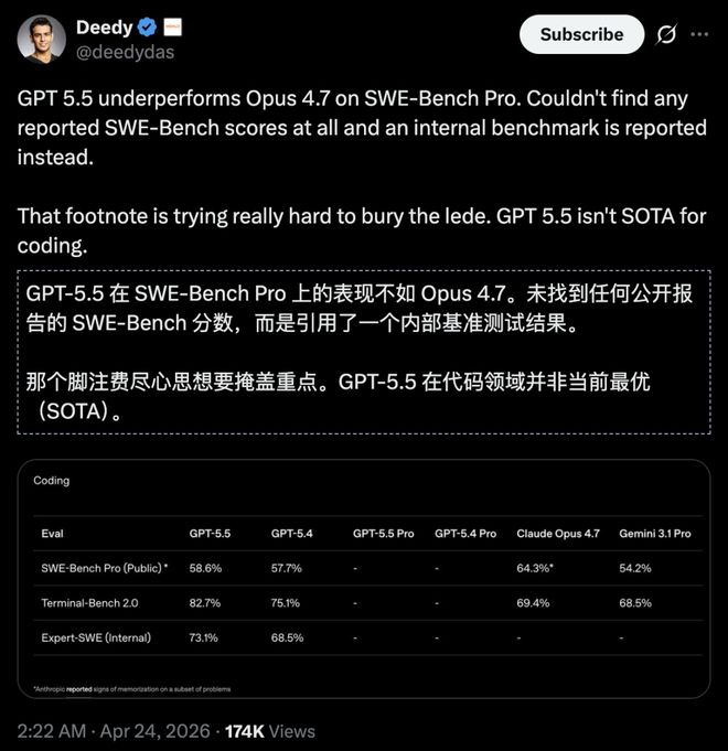后端开发、复杂Bug定位、大型代码库理解,GPT-5.5在这些维度全面领先。