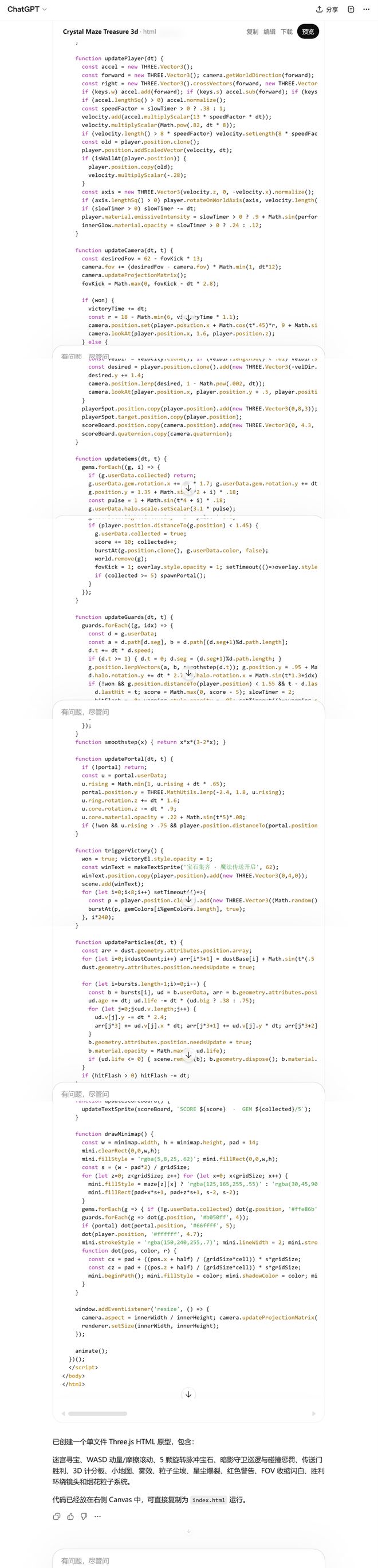 接下来,要求两个模型开发一个游戏网站,测试它们在动态图形、3D空间交互、碰撞检测和整体游戏架构方面的能力。