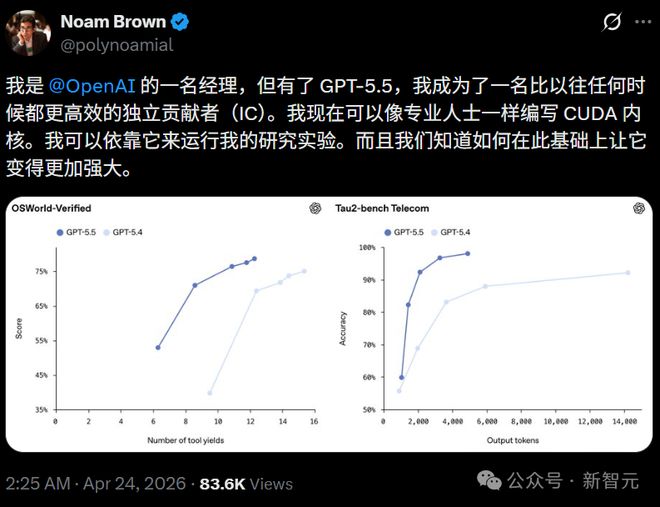 用他的话说,「有了GPT-5.5,我的IC效率比以往任何时候都高。我现在可以像专业人士一样编写CUDA kernels,可以依靠它来运行我的研究实验。」