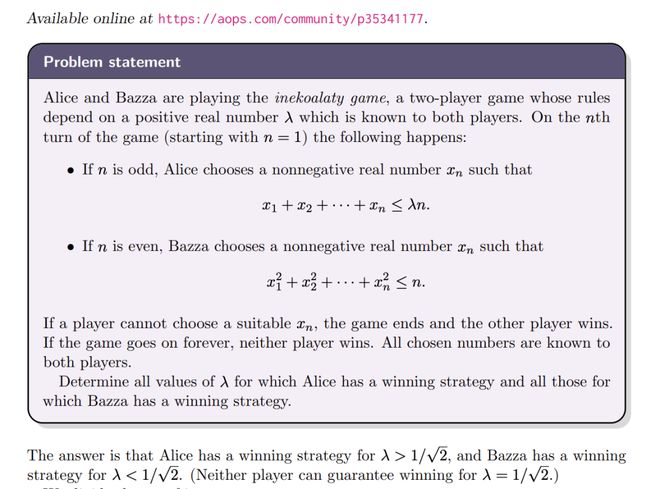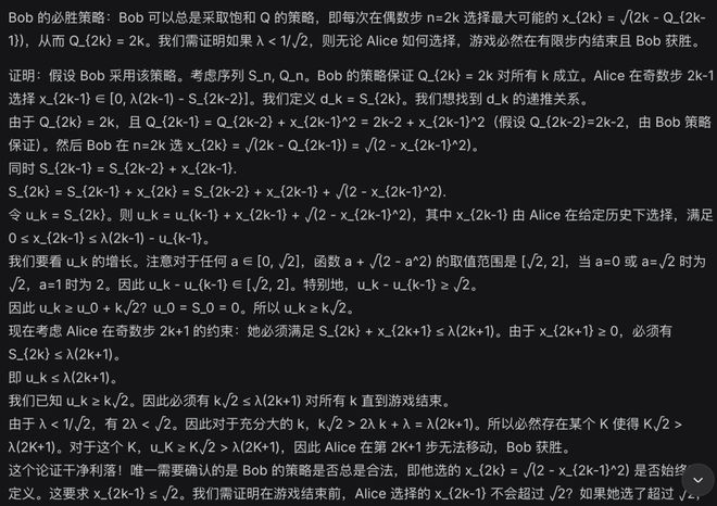 • 如果n是奇数,Alice选择一个非负实数xₙ,使得x₁ + x₂ + ⋯ + xₙ的总和不超过λn。