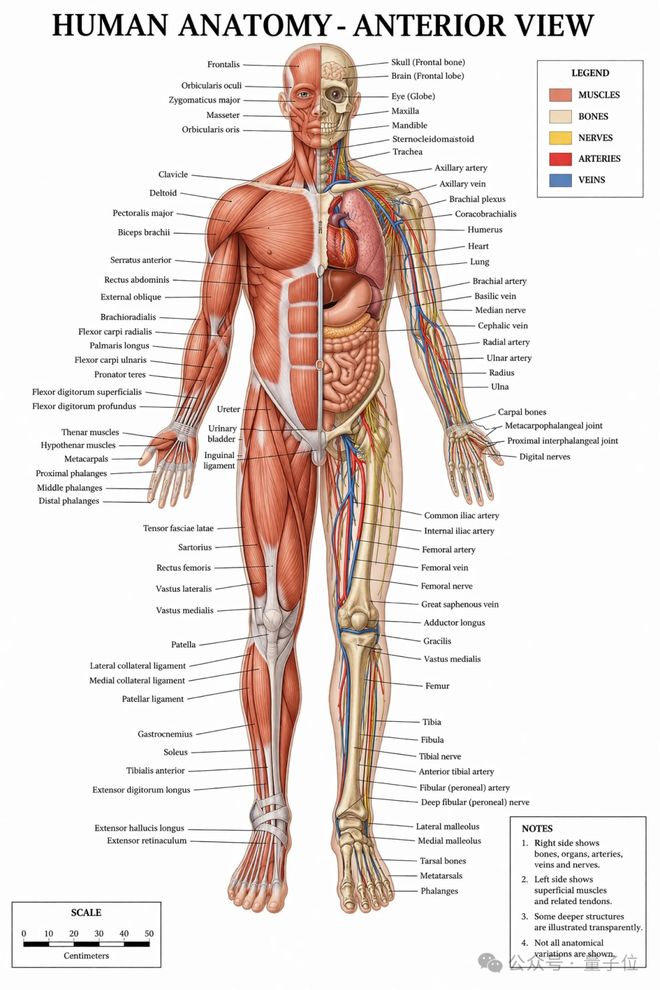 画人体结构图,效果看上去就像教科书里的插图一样。