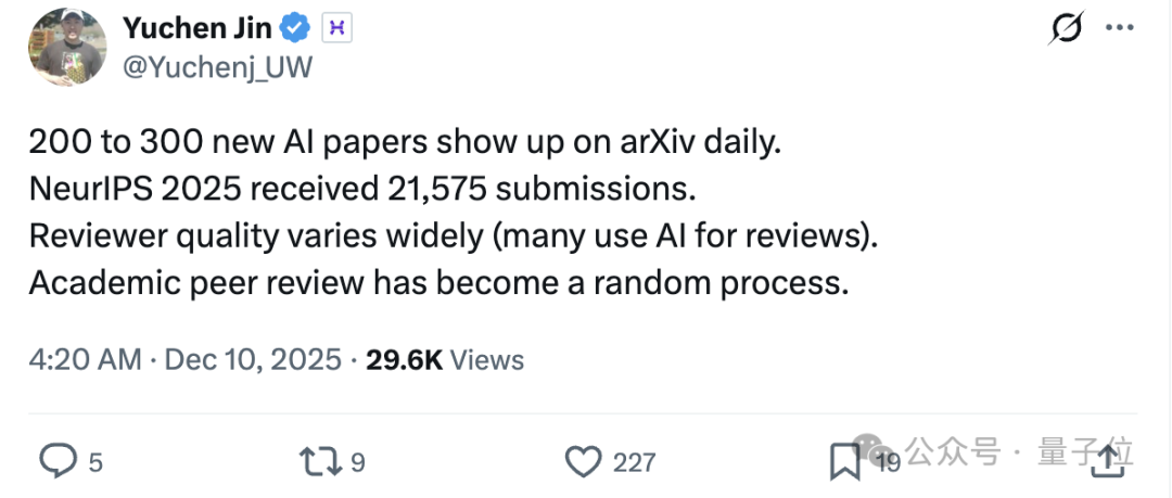 AI降低写作门槛→投稿量激增→审稿压力增大→评审质量波动→优秀成果被淹没。