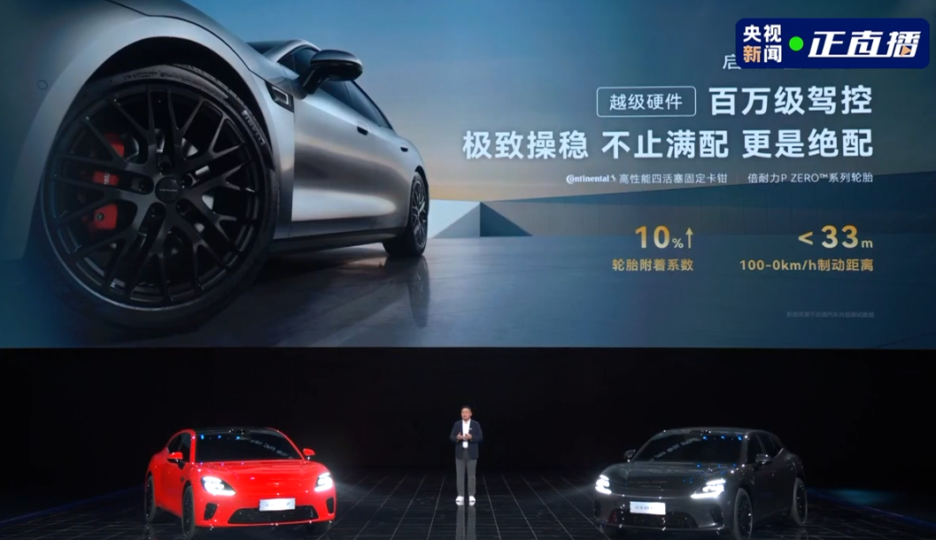 此外,该车还配备了闭式双腔空气弹簧,并使用了连续阻尼可调减震器。启境 GT7 还装配有前轮尺寸为 255、后轮尺寸为 275 的轮胎以及四活塞刹车卡钳。