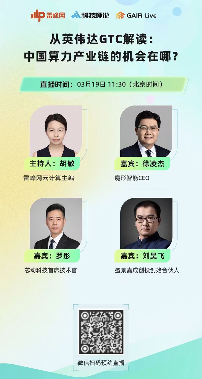 同时,我们也特邀3位行业顶级专家,于3月19日11:30开讲,对GTC 2026进行深度解析,全方位拆解算力产业的核心趋势、投资机遇与破局方向,欢迎锁定视频号“雷峰网”、“AI 科技评论”直播间,共探产业新局。