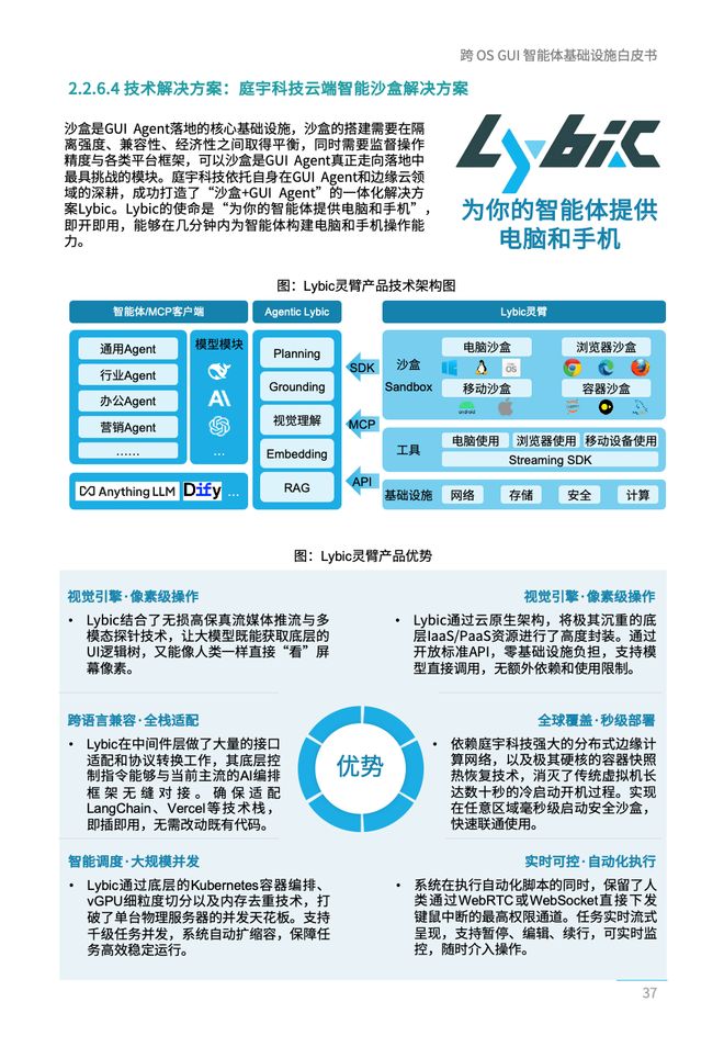 2024年起,庭宇科技便开始涉足GUI Agent领域,于2025年10月发布了其首款基于边缘智算架构的GUI Agent产品Lybic。这款产品的推出不仅填补了公司在智能操作系统领域的空白,还初步构建起以“边缘云-GUI Agent-云手机/电脑”为核心的产品体系,形成了以边缘智算为基础的AI全栈基础设施生态。Lybic依托庭宇科技的强大技术底座和沙箱环境保障,打造了一套具备毫秒级延时、高安全性和全场景适应性的产品优势。