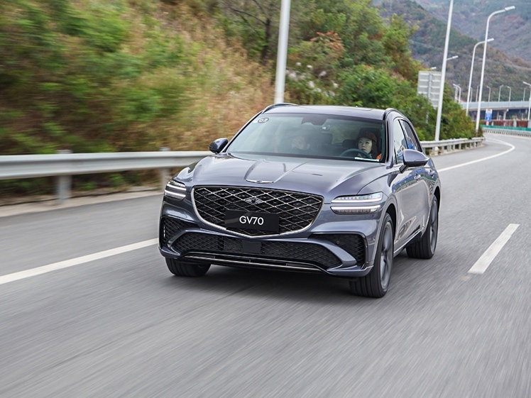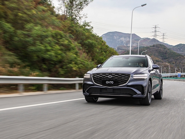 此次试驾的GV70为运动版车型,其双层结构的盾形中网搭配了深色的镀铬装饰,整体造型大气庄重,配色低调动感,这种看似矛盾的和谐感是当前流行的时尚设计风格。