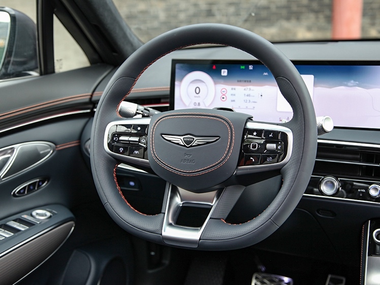 GV70在隔音方面下了不少功夫,音响系统的主动降噪功能、各种声学包的应用以及全车双层夹胶隔音玻璃,对各种噪音的控制非常到位,甚至让人感觉置身于一个完全隔离的环境中。只是音响模拟的发动机声浪电子味道较浓,否则我会毫不犹豫地给其座舱环境满分评价。