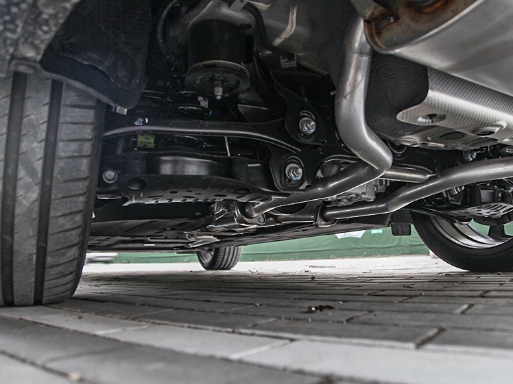 修长的发动机舱与起伏的腰线相得益彰,整体造型动感优雅。运动版车型的行李架、窗线、车门把手和裙边的镀铬饰条均采用暗色处理。高配车型配备了21英寸的五辐轮圈,前四后二活塞的刹车系统也采用了黑色涂装,这又是一个兼具低调与张扬的设计元素。