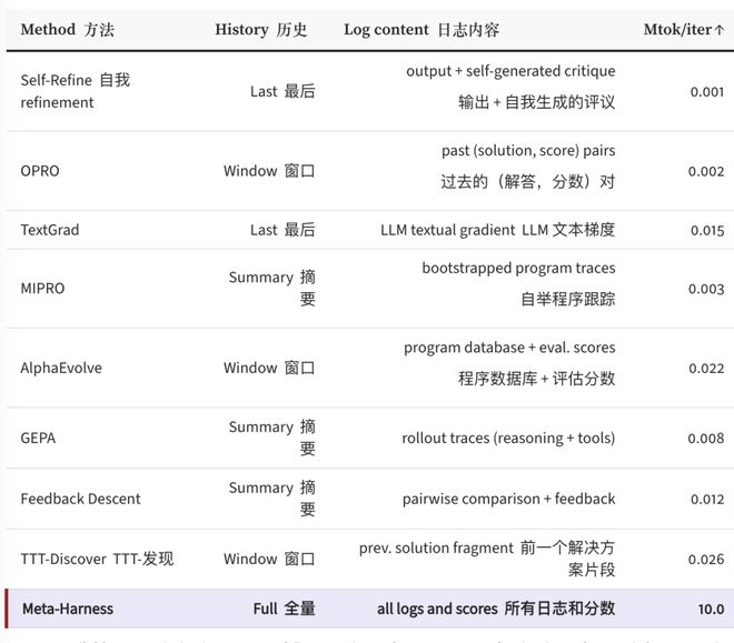 而Meta-Harness能够观察高达1000万token的信息,差距达到了400倍之多。
