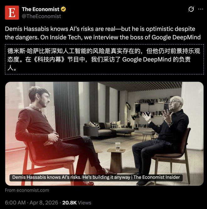 Demis Hassabis一边谈论风险,一边继续推动更强的系统开发。