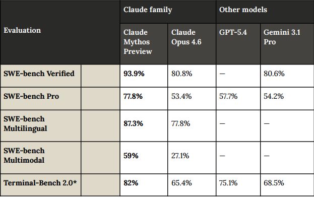 从软件工程角度来看,Claude Mythos Preview的表现远远超过了Opus4.6——这些能力之前已经有所透露。