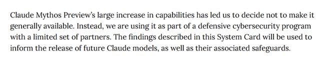 由于认为Claude Mythos Preview模型过于危险,Anthropic决定暂时不公开发布这一最新成果。