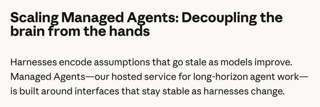 但Managed Agents则是围绕一套稳定的接口构建的,即使Harness逻辑发生变化,这些接口依然能够保持稳定。