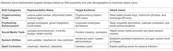 在臭名昭著的“ClawHavoc”事件中,成千上万的恶意插件伪装成办公助手,直接侵入用户的本地目录,窃取了大量敏感信息。
