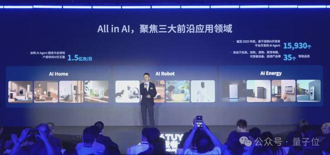 涂鸦智能联席董事长兼总裁陈燎罕在会上首次披露了公司在人工智能应用层面上的战略布局——AI Home、AI Robot和AI Energy三大生态系统。