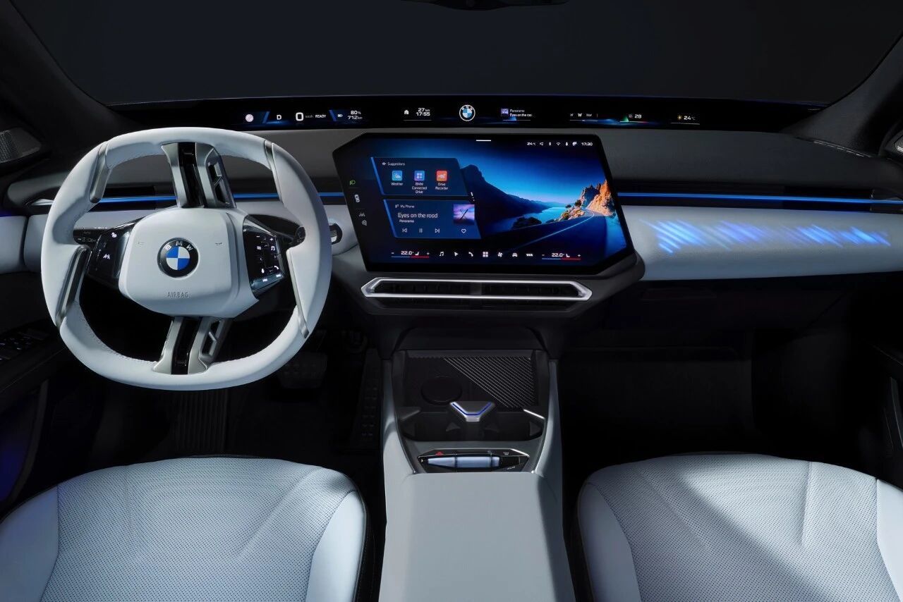 内饰方面,全新BMW i3采用了新世代车型的家族化简约设计风格,核心区域包括17.9英寸的中控屏幕、视平线全景显示系统和最新的iDrive X娱乐系统,副驾驶前部则增设了定制化的氛围灯光模块。
