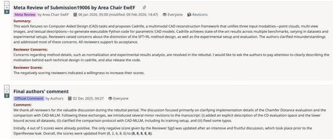 论文于 2025 年底进入评审阶段,所有审稿人均给予了高度评价,并一致推荐接受;然而,在 2026 年初收到官方 Accept (Oral) 的通知之后,该决定在四月份被撤销。