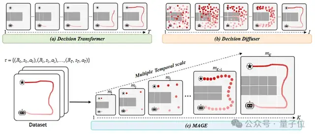 - MAGE则利用多尺度“由粗到细”的架构成功完成了任务。它首先在最宏观的时间尺度上建立包含所有关键节点的整体框架,然后通过多尺度Transformer逐步细化,最终规划出完整的路径。