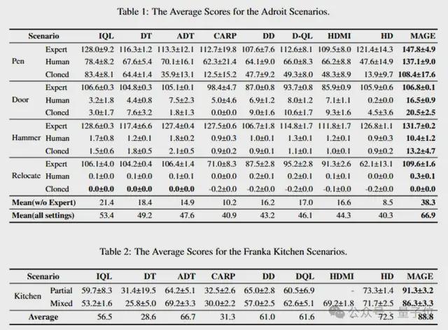 研究团队在Adroit、Franka Kitchen等五个离线RL测试环境中将MAGE与15种具有代表性的基线算法进行了广泛对比评估。