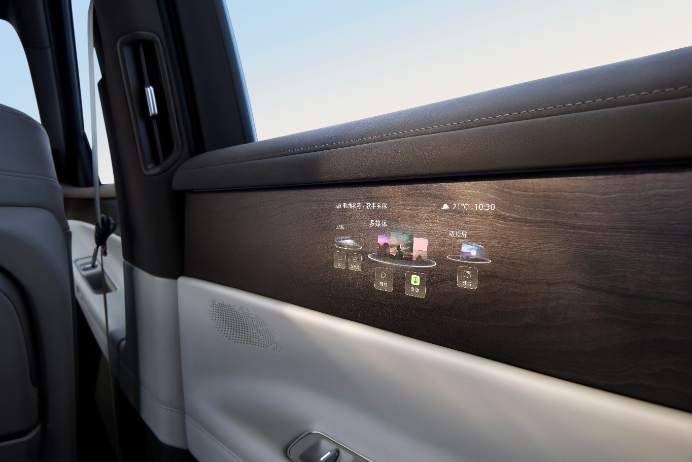 座舱内配备九屏联动,包括15.6英寸中控双联屏、后排21.4英寸吸顶屏及3块Smart Surface魔术屏,支持眼球追踪WHUD。首发ERA SOUND音响系统。座椅采用母婴级全粒面NAPPA材质,通过OEKO-TEX认证。车身高强度钢占比77%,通过超千万公里道路验证。