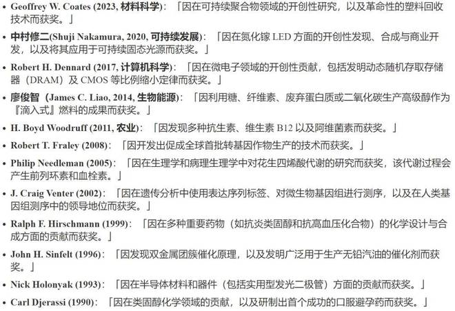 多年来,美国国家科学院科学工业应用奖的得主们在各自的领域继续取得显著成就,其中五位获得了美国国家科学奖章,一位荣获了诺贝尔物理学奖。