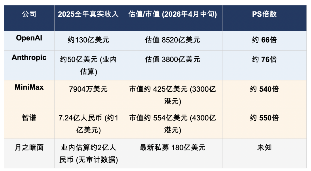 收入增长是最关键的因素。尽管月之暗面的海外收入每月增长170%,且智谱全年收入同比增长131.9%,下半年环比又增180%——但这些数字在整体市场背景下仍然显得微不足道,不足以显著降低市销率。