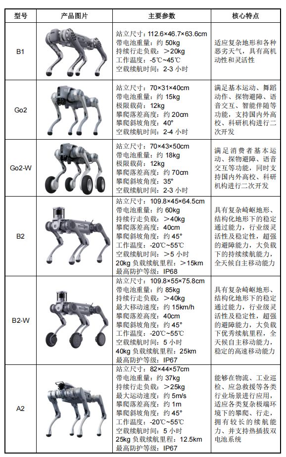 目前,宇树科技已拥有多个系列的核心产品,包括Go系列、A系列、B系列的四足机器人,这些产品广泛应用于科研、教育、能源化工和智能制造等多个领域,连续多年保持行业领先地位。