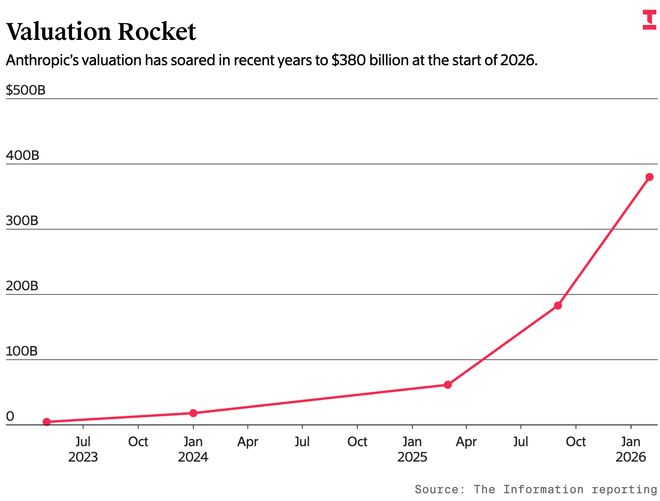为了支付公司的全部开支,拉奥自入职以来已推动Anthropic完成多轮融资,累计筹资600亿美元(约合人民币4092亿元),估值在2026年1月抬升至3800亿美元(约合人民币2.59万亿元)。
