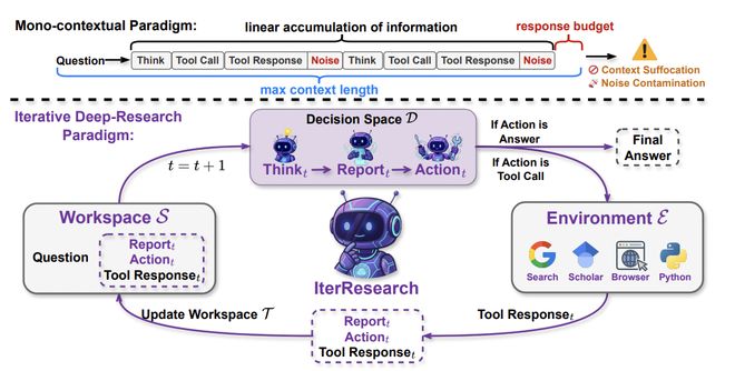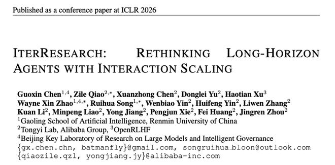 中国人民大学与阿里巴巴通义实验室的研究团队提出了 IterResearch,一种全新的迭代式深度研究方法。