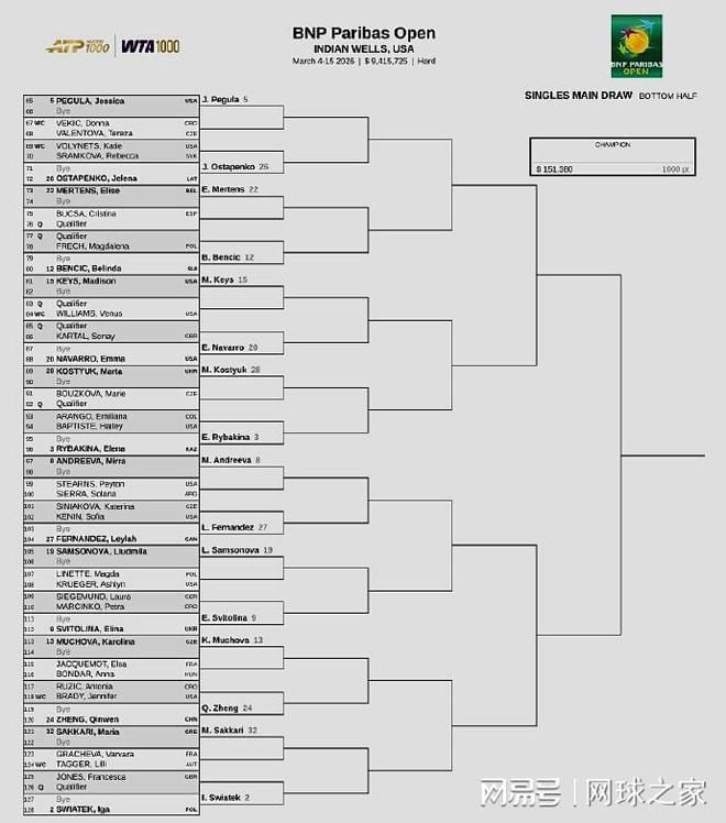 中国二姐王欣瑜同样首轮轮空,次轮对手将在澳洲人汤姆贾诺维奇和罗马尼亚人鲁塞之间产生;若能晋级,则有可能挑战意大利小钢炮鲍里妮。此外,中国老将张帅首轮对阵乌克兰选手雅斯特雷姆斯卡,如果获胜,第二轮的对手将是菲律宾一姐伊埃拉。祝愿所有参赛的中国女网球员好运!