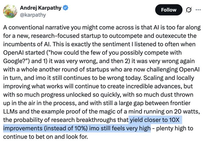 Karpathy在X上的评论一针见血: