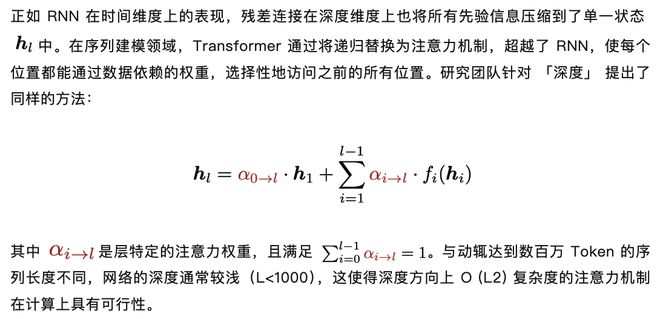 核心创新:既然Transformer用注意力机制取代了RNN,解决了长序列的遗忘问题,那么AttnRes就在深度上取代了残差累加。