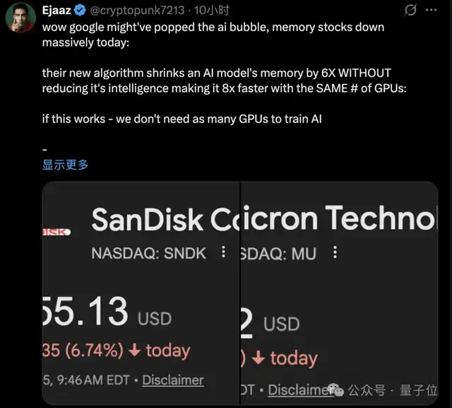 这一消息让市场反应强烈,认为这对内存股来说是个负面消息,因为未来的AI推理可能不需要这么多内存。