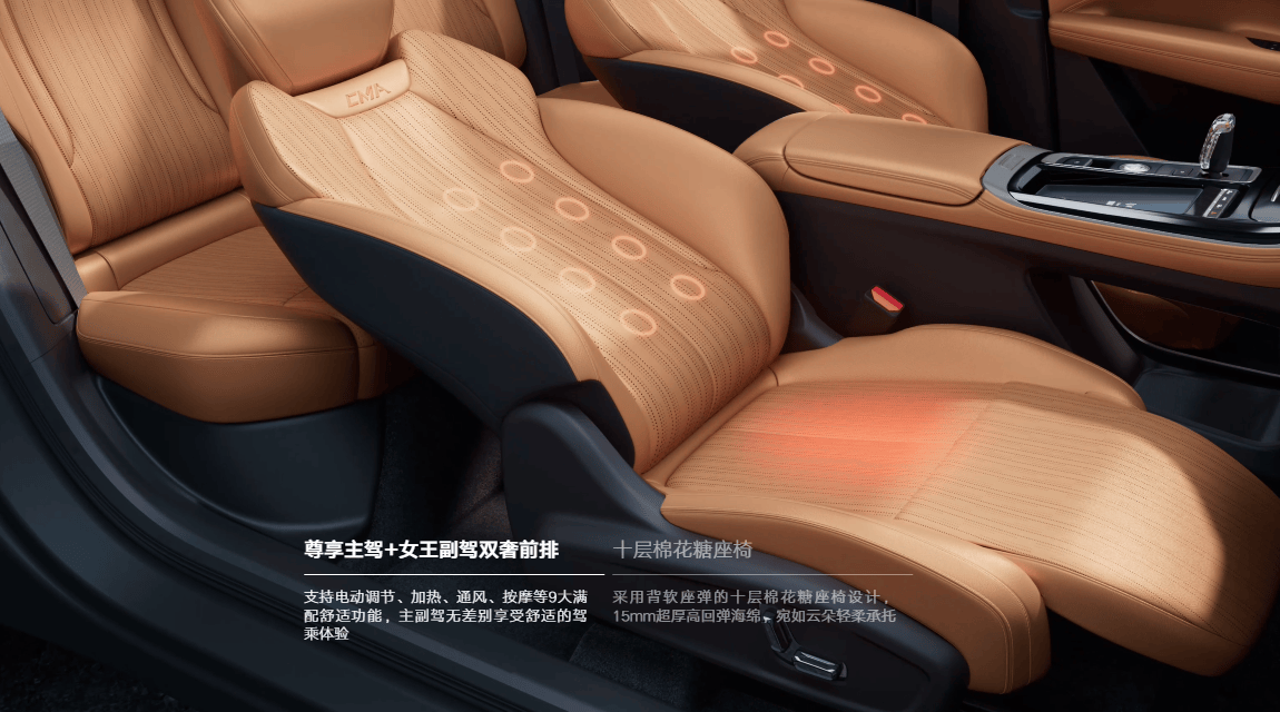 在座椅配置方面,新车标配了具有加热、通风及8点式按摩功能的皮质前排座椅以及三个记忆位置设定。副驾驶座位还增加了电动腿托支持女王坐姿的半躺姿势调整,使得驾乘体验更加舒适。