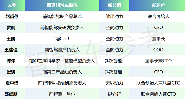 截至目前,已有至少八位来自理想汽车的高级管理人员进入这一新兴领域创业或加入相关项目。