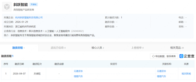 新创公司的两位创始人联手创立了一家公司,在短短两个月内便获得了首轮融资。值得注意的是,这家公司的投资者名单中不仅包括理想的早期股东——阿里CEO创办的元璟资本,还有原雇主理想汽车。