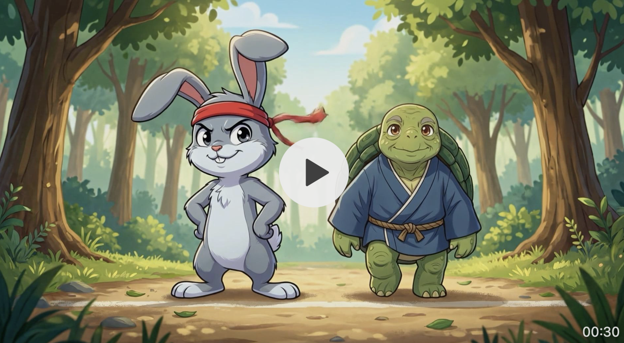 比如我甩给我的有道🦞一句话,让它给我做个龟兔赛跑的短片。