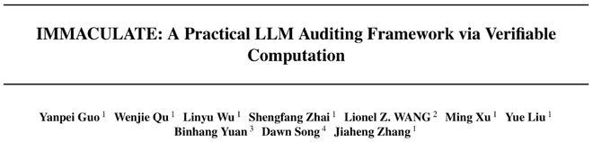 - 该论文的题目为《IMMACULATE:通过可验证计算进行实际 LLM 审计的框架》。