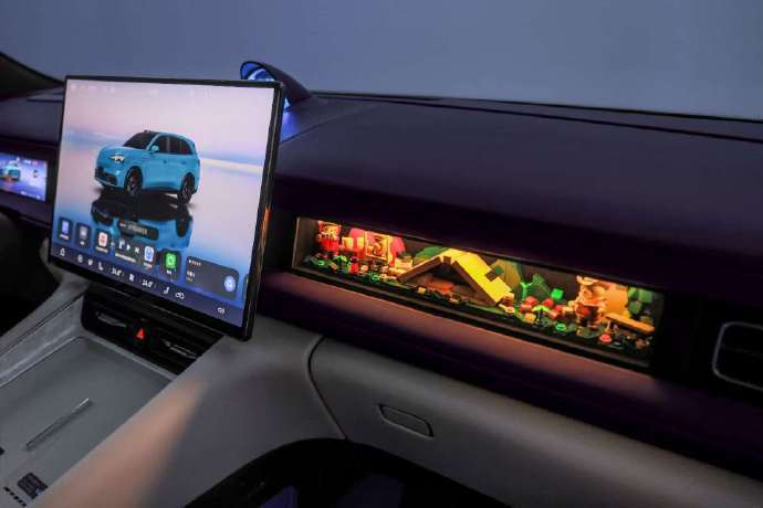 在内部空间及配置方面,车辆提供了接近2米的宽敞乘坐空间,前排座椅还支持双零重力选项。此外,纯电版本车型额外配备了前备箱。车内装饰颜色有梓木白、引力红以及电光橙等撞色选项。值得一提的是,副驾区域采用了独特的设计,包括一块可以显示照片的彩色墨水屏和一个装有防爆钢化玻璃的磁吸手办板。