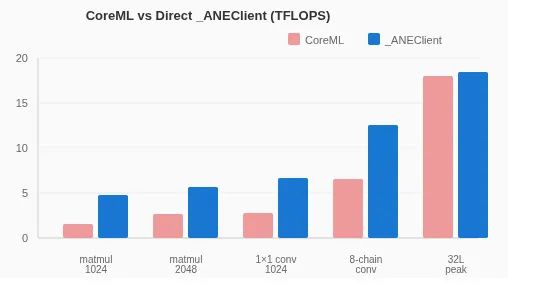 在高吞吐量配置下,由于ANE计算时间占主导,这一差距会缩小。但对于延迟敏感型的工作负载(如大语言模型的token解码、实时推理),CoreML带来的性能损失相当严重。