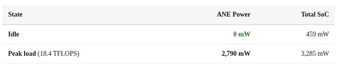 ANE在峰值算力下功耗仅2.8W,19 TFLOPS能效比高达6.6 TFLOPS/瓦,堪称疯狂!