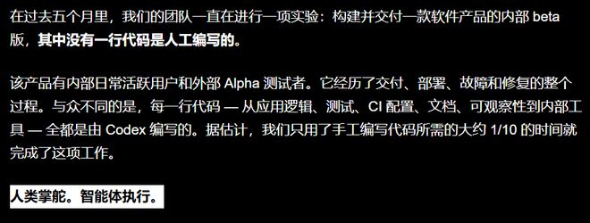 OpenAI在其广受好评的文章《Harness Engineering》中明确指出:人类掌舵,智能体执行。