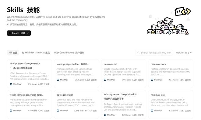 在平台层面,MiniMax Agent则推出了Expert 2.0。用户用自然语言描述任务目标,Agent自动完成SOP梳理和能力配置,不需要懂Skill、SubAgent、MCP这些概念。上线以来已有1.6万+专家Agent被创建和使用。