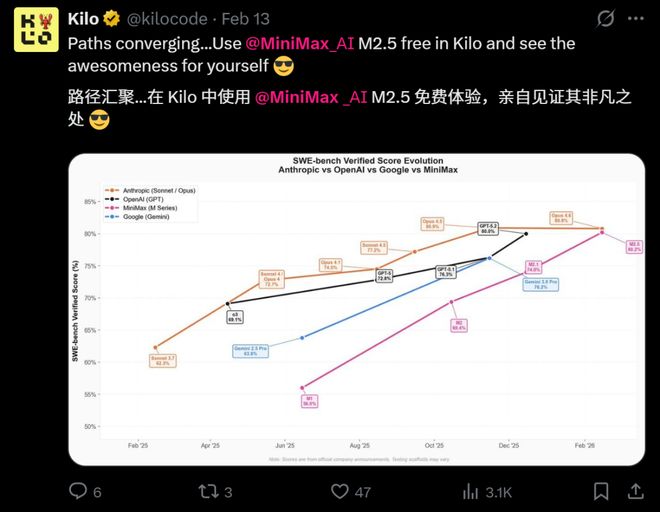被称为「Cursor最强对手」的AI编程工具Kilo Code,也高调宣布MiniMax是默认首选模型。